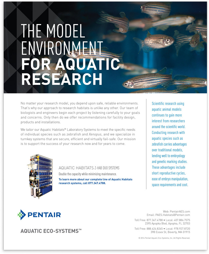 Designed various sized ads for Pentair Aquatic Eco-Systems Aquatic Habitats Z-Hab Duo Systems.