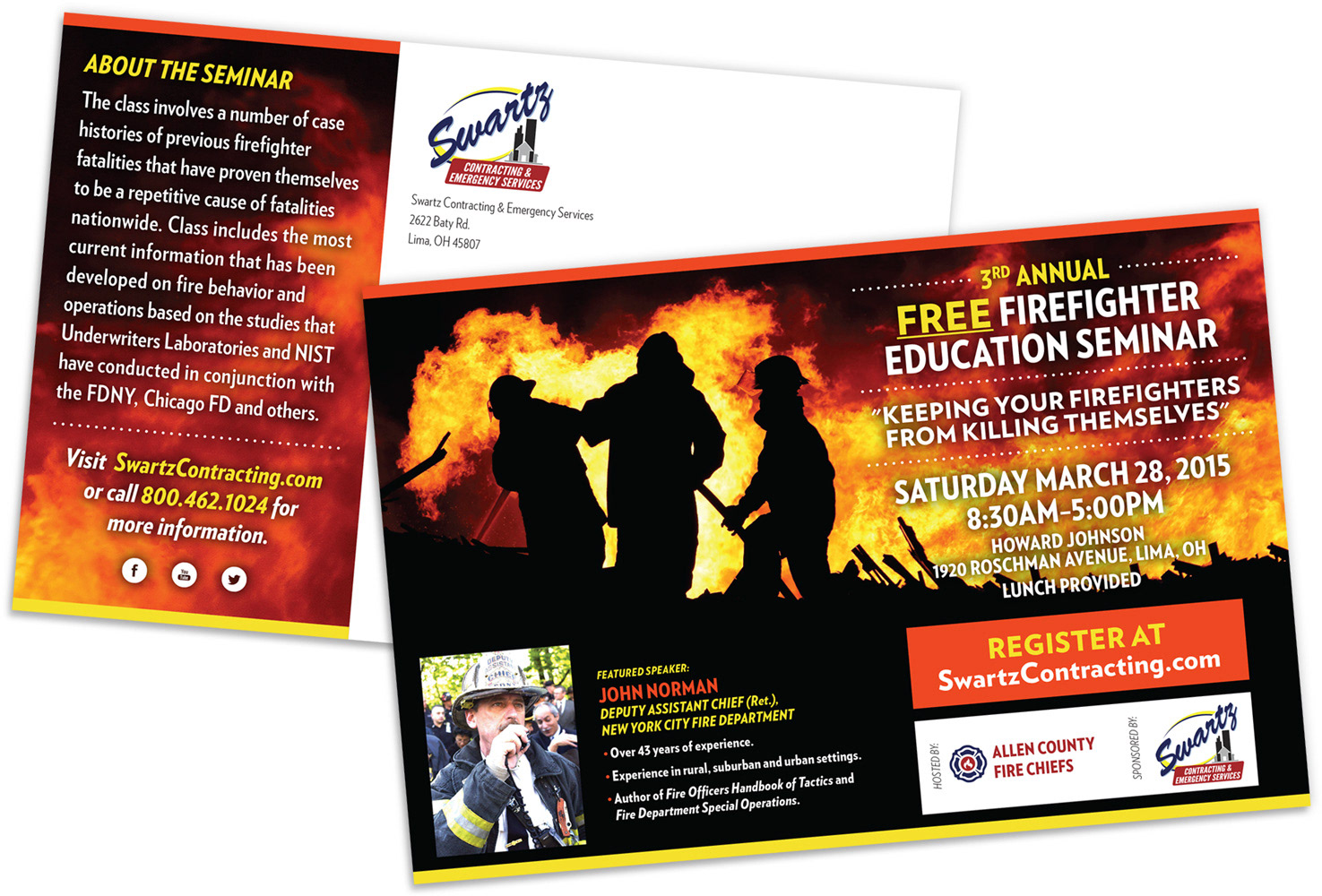Designed poster and postcard for the 3rd Annual Firefighter Education Seminar.
