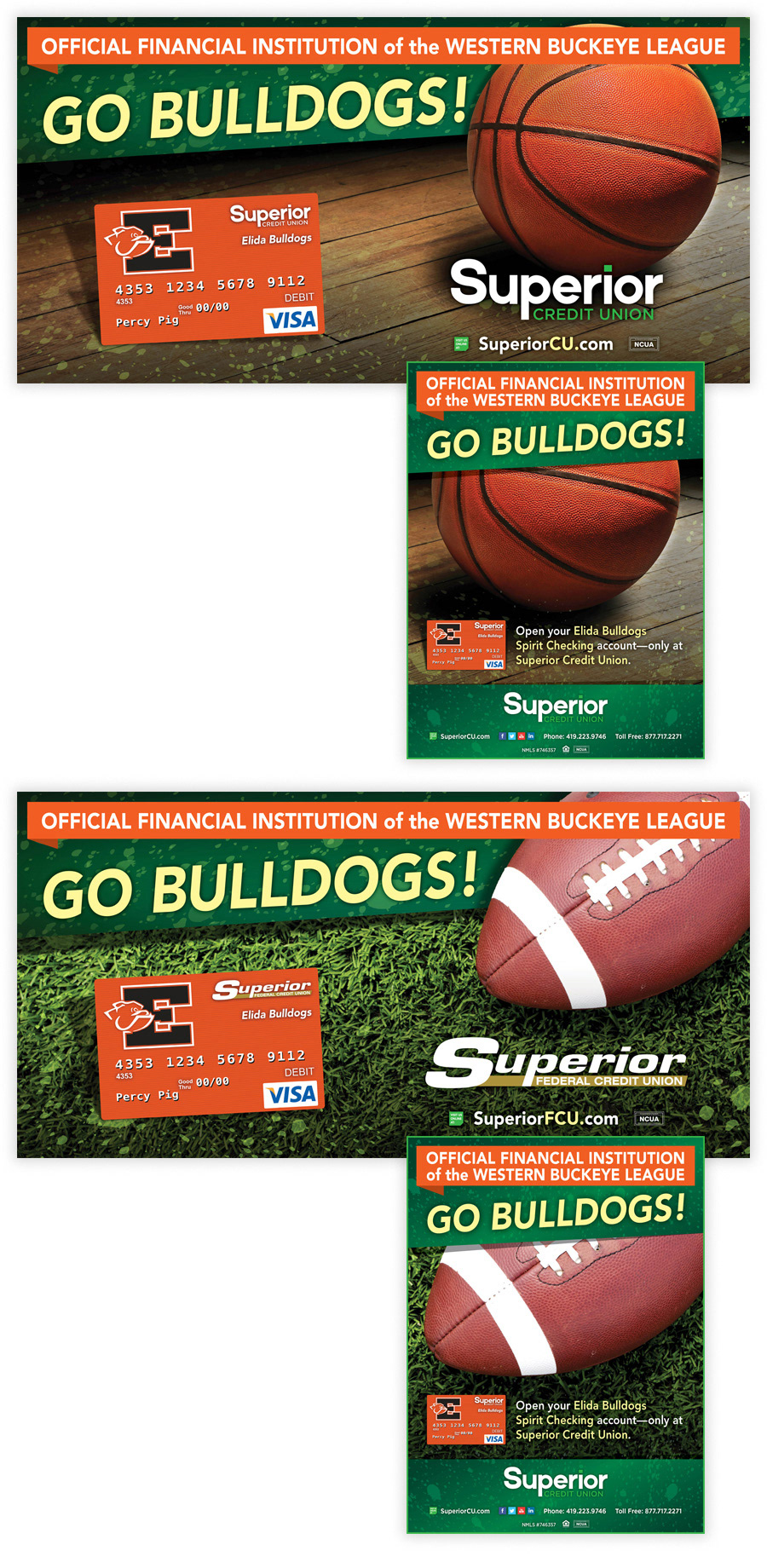 Design ads and banners for Superior Credit Union for schools in the WBL. Customized for each school.